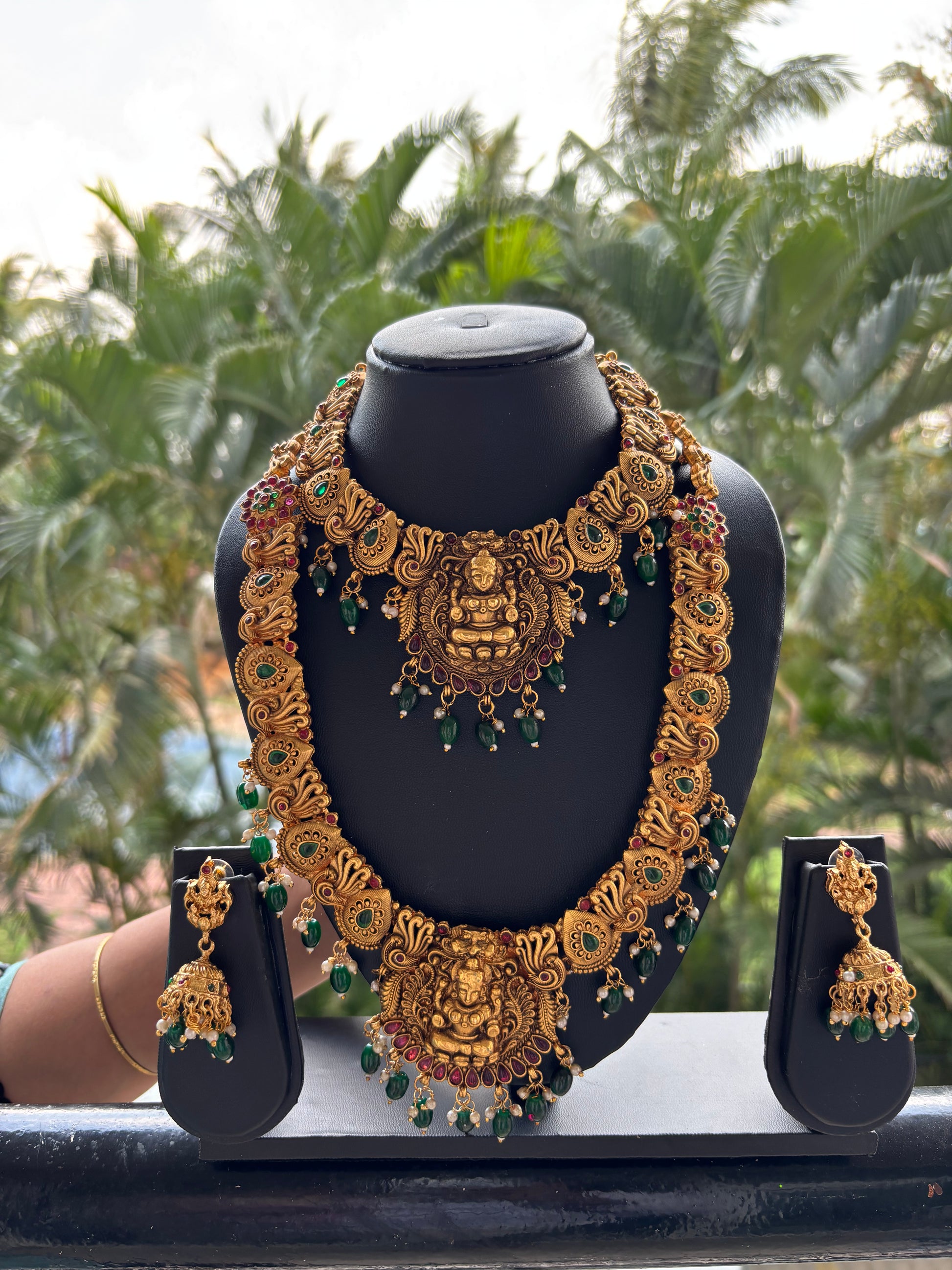 A stunning Traditional Antique temple jewellery set with green beads for your special occasions