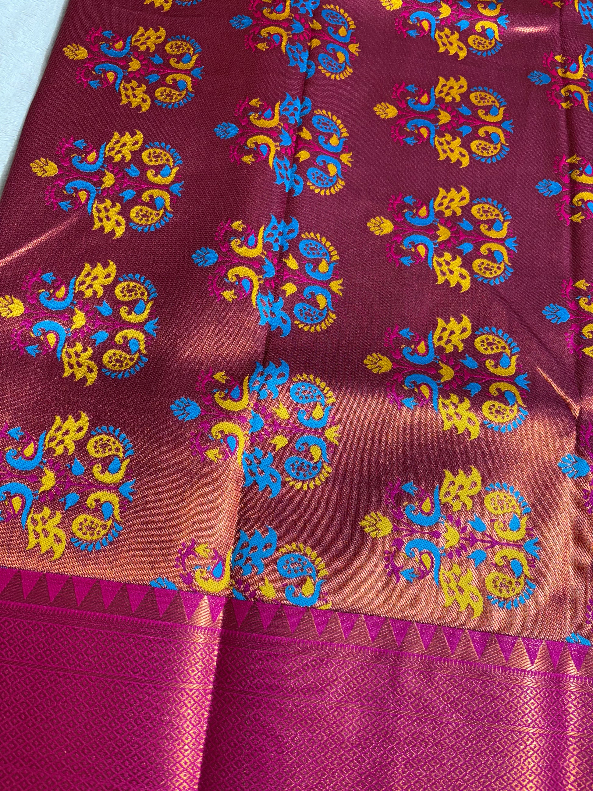 This beautiful soft silk saree features a deep bottle green color paired with a rich red pallu. The combination of these two colors creates a stunning contrast that is sure to catch everyone's eye. Made from high-quality silk, this saree is both soft and luxurious, making it perfect for any occasion. Elevate your wardrobe with this elegant and timeless piece.