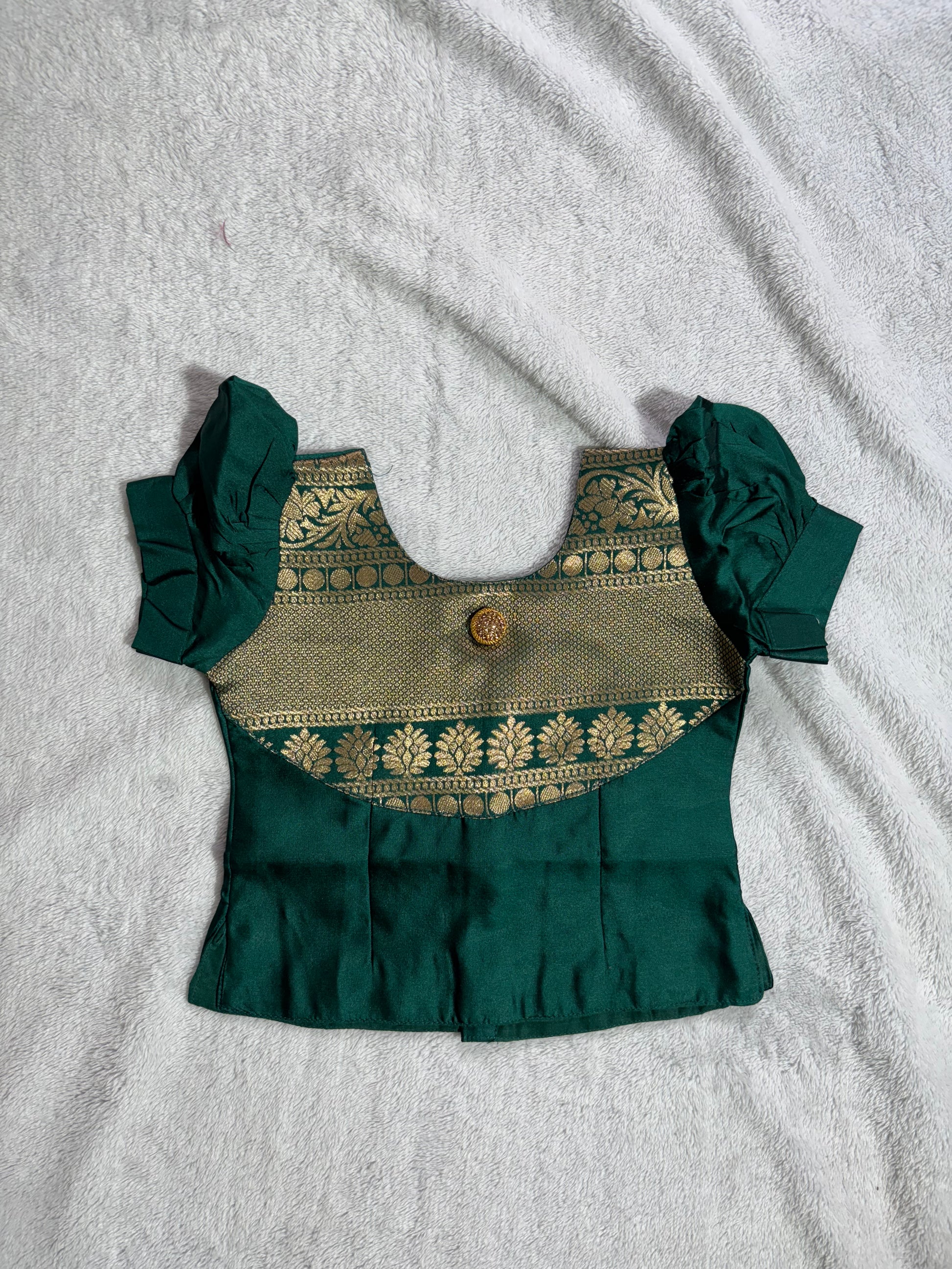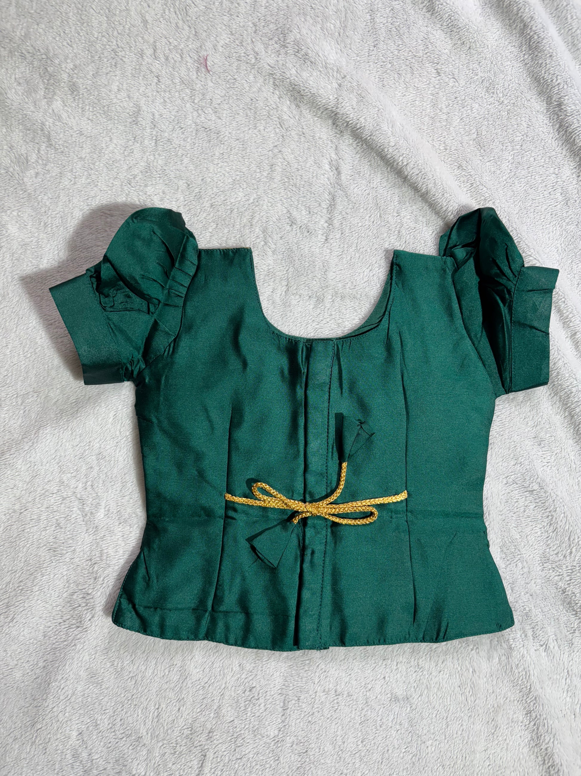 This elegant dark green blouse pairs beautifully with a pista green lehenga pattu pavadai, creating a harmonious blend of rich and subtle hues. Crafted to complement traditional attire, the blouse enhances the overall look with its deep, sophisticated shade, making it ideal for festive occasions and cultural celebrations. Its design ensures a perfect fit and comfort, allowing you to showcase timeless style with ease.