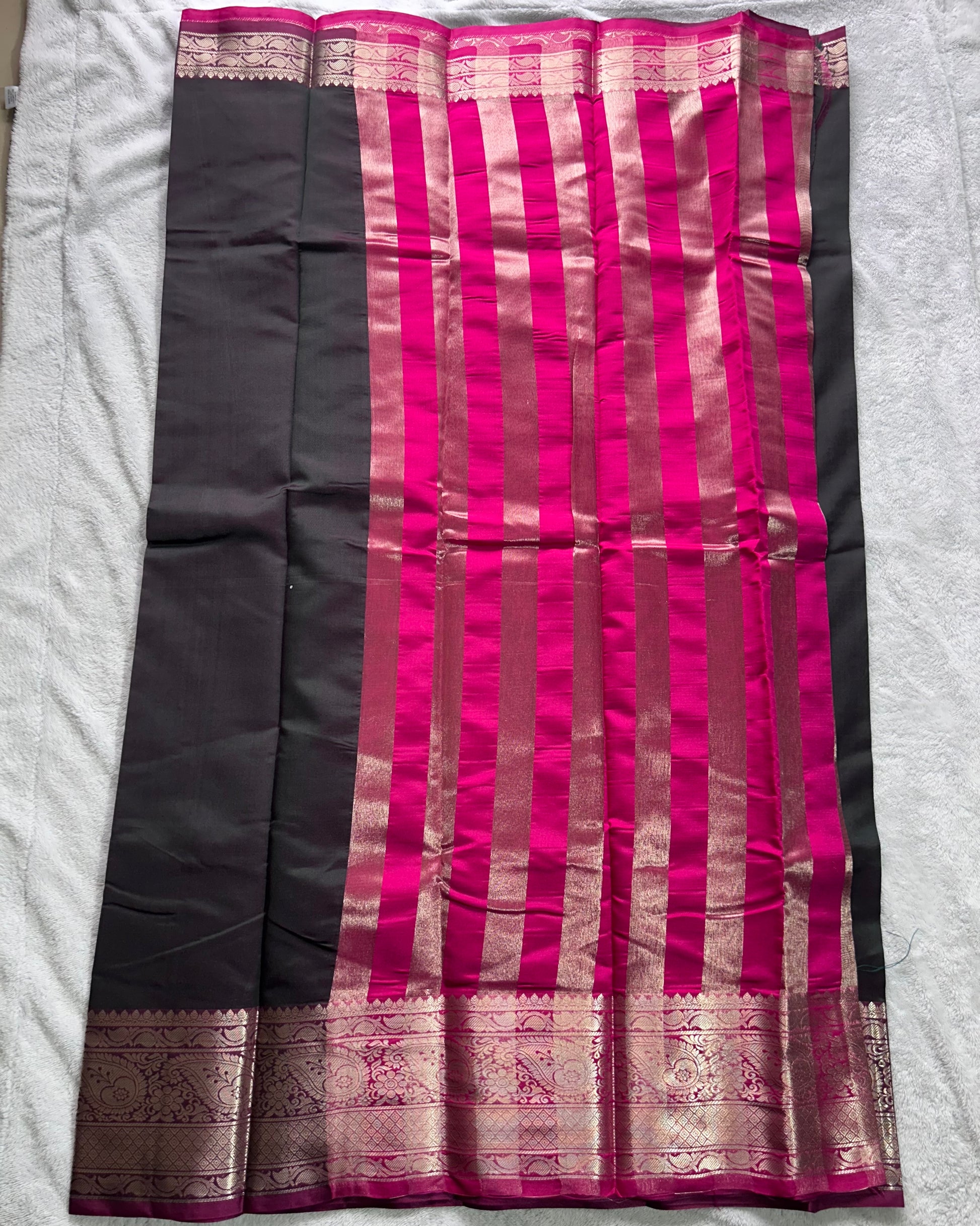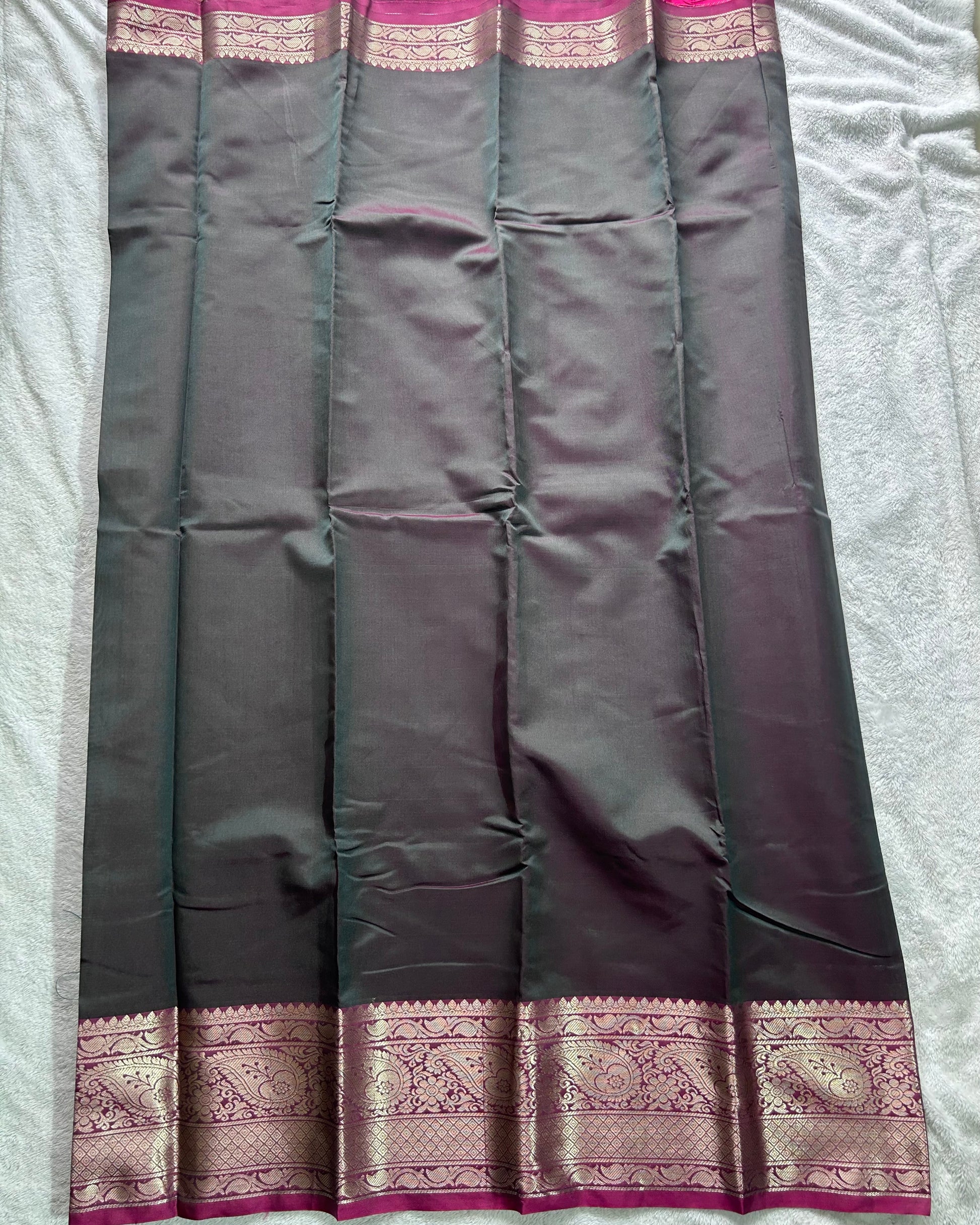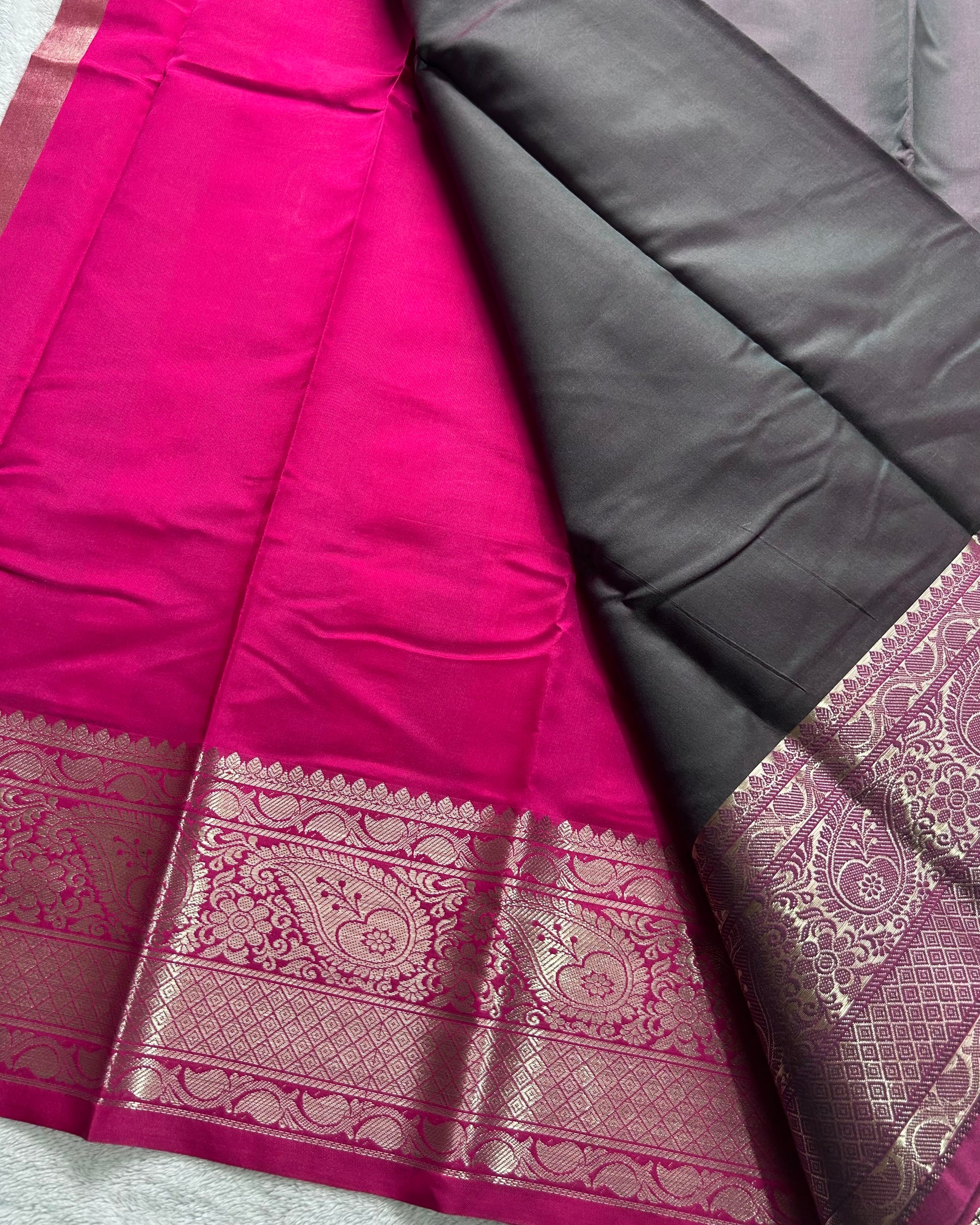 Introducing our elegant Dark Green with Rani Pink Contrast Blouse Semi Silk Saree. Made with high-quality semi silk material and beautiful contrasting colors, this saree offers a unique and stunning look. Perfect for any occasion, this saree is sure to make you stand out and feel confident.