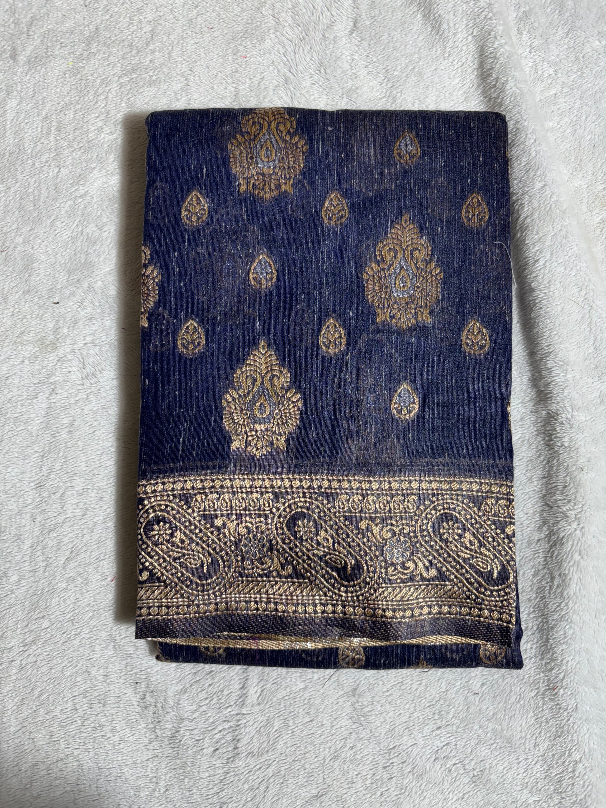 Experience the elegance and comfort of our Navi blue cotton silk saree. Our designer saree features a rich navy blue color and intricate botta design, making it the perfect choice for any occasion. Made from high-quality cotton silk, this saree offers both style and comfort. Elevate your wardrobe with this must-have piece.