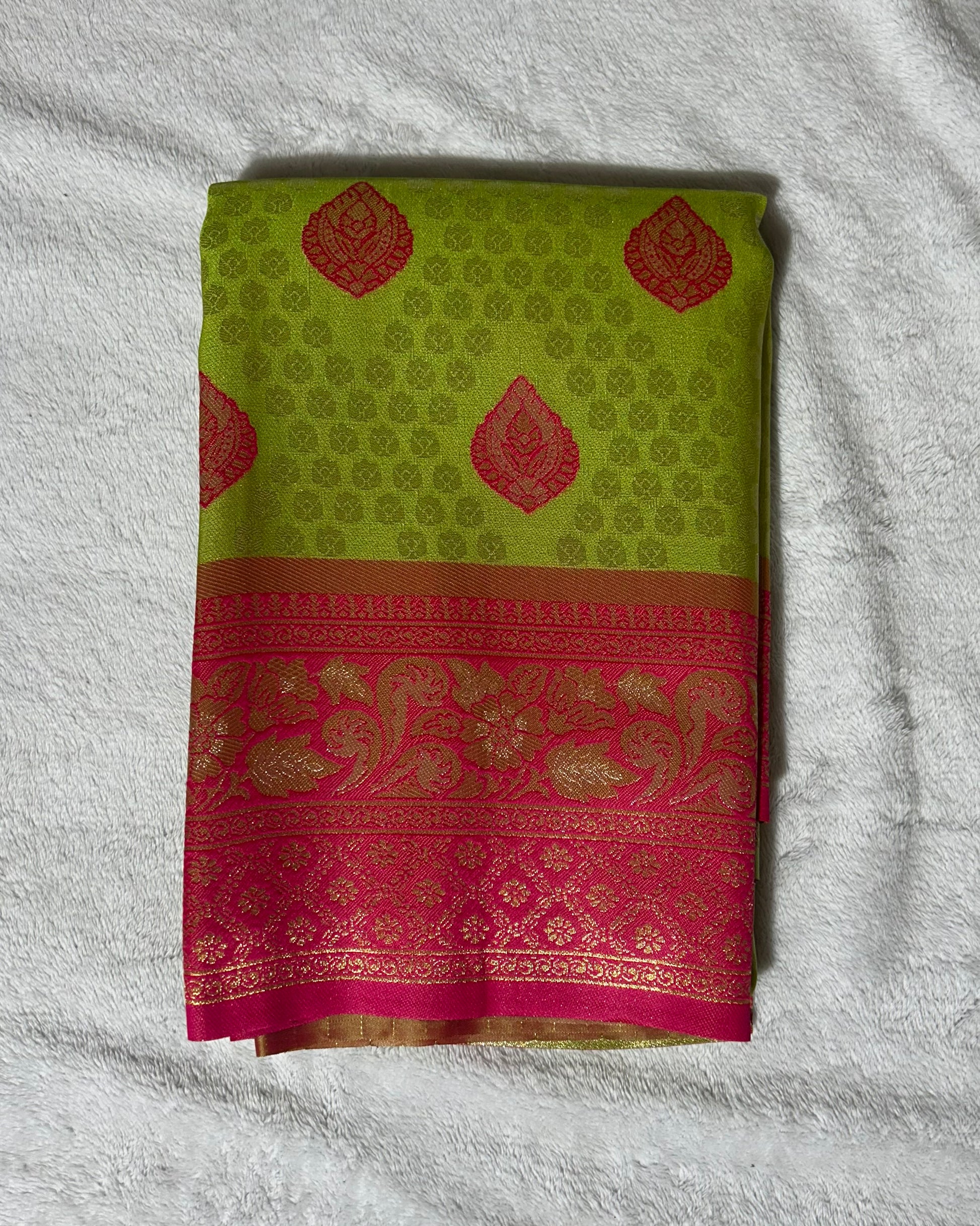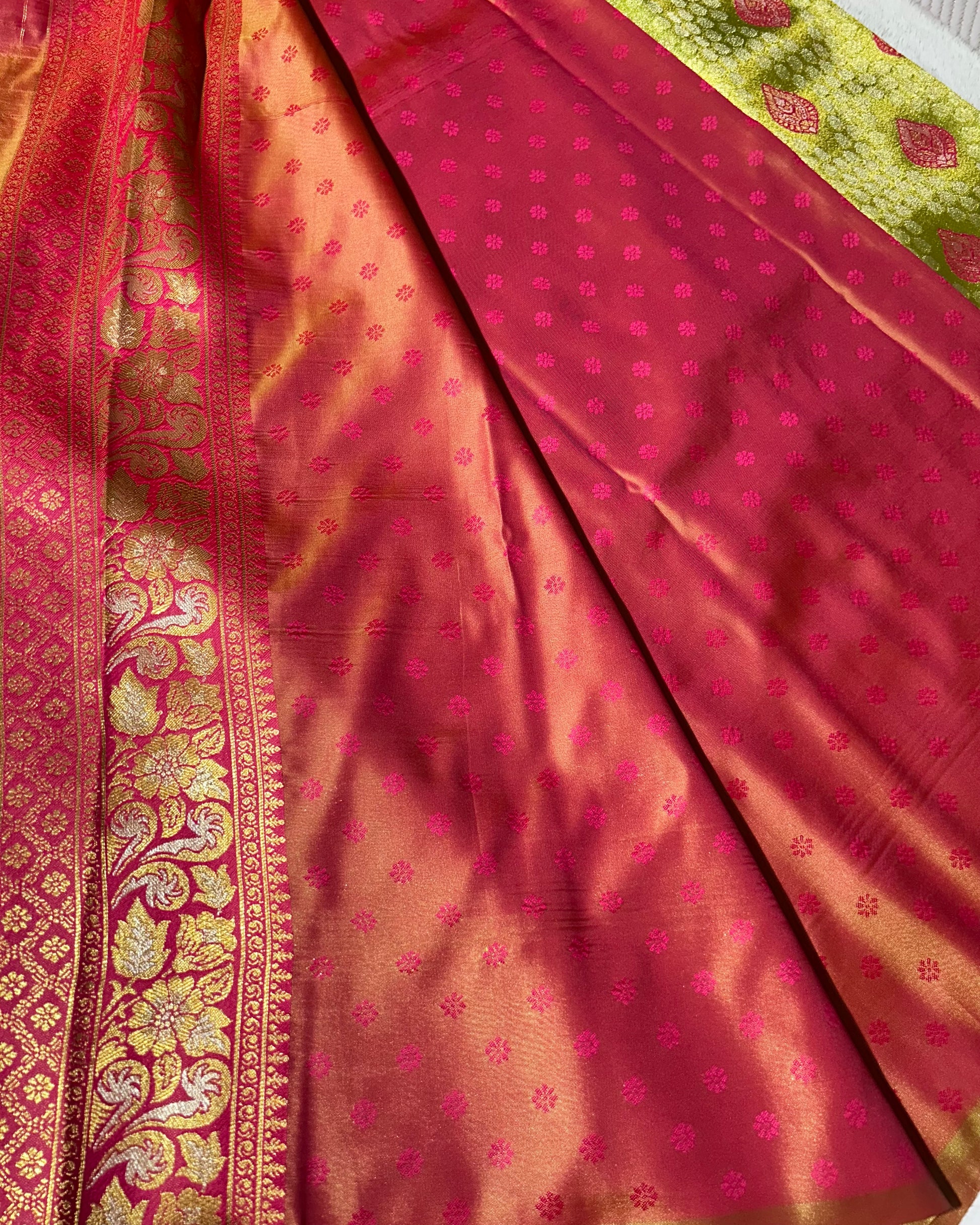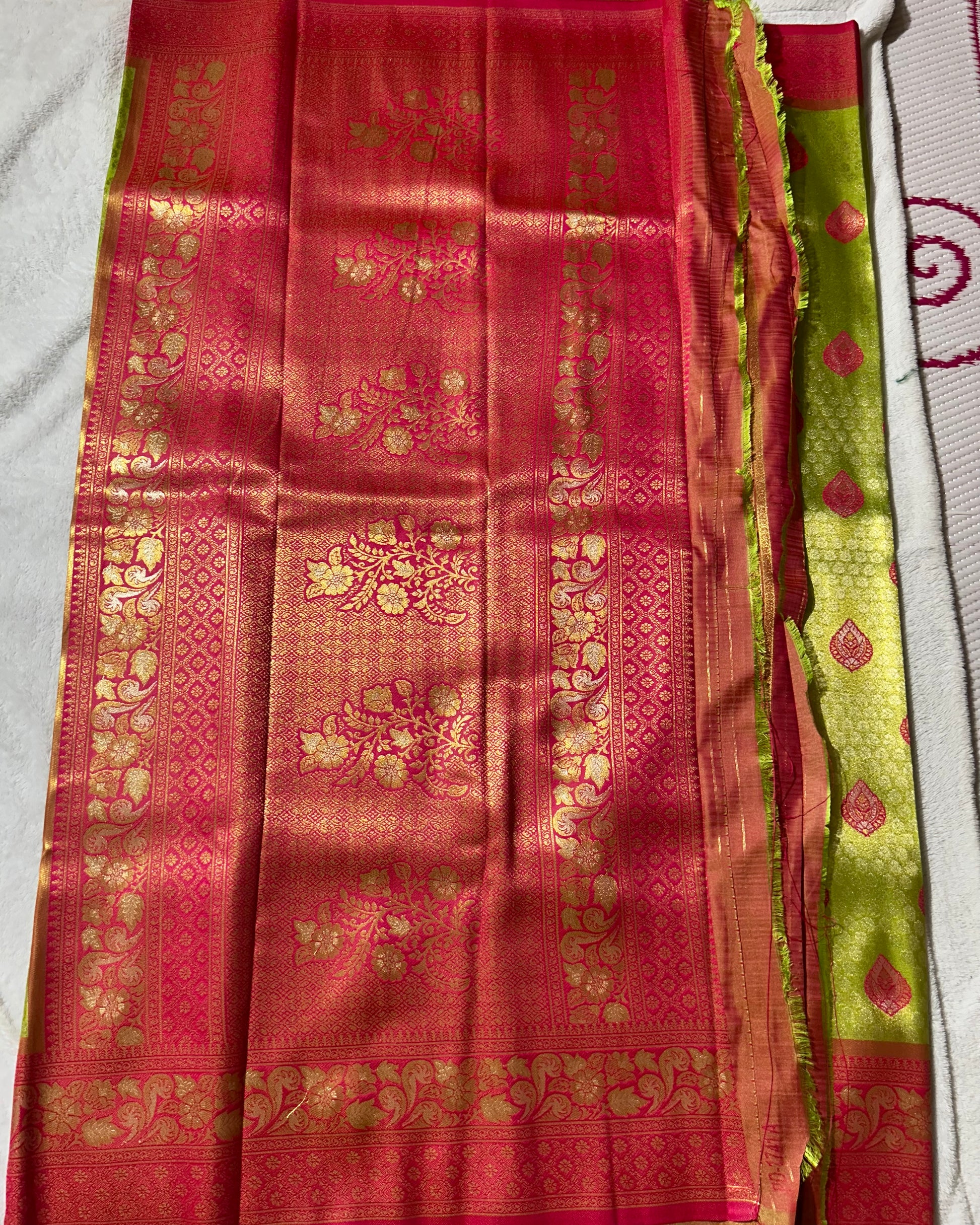 Parrot Green with Pink Banarasi Kanchipuram silk saree
