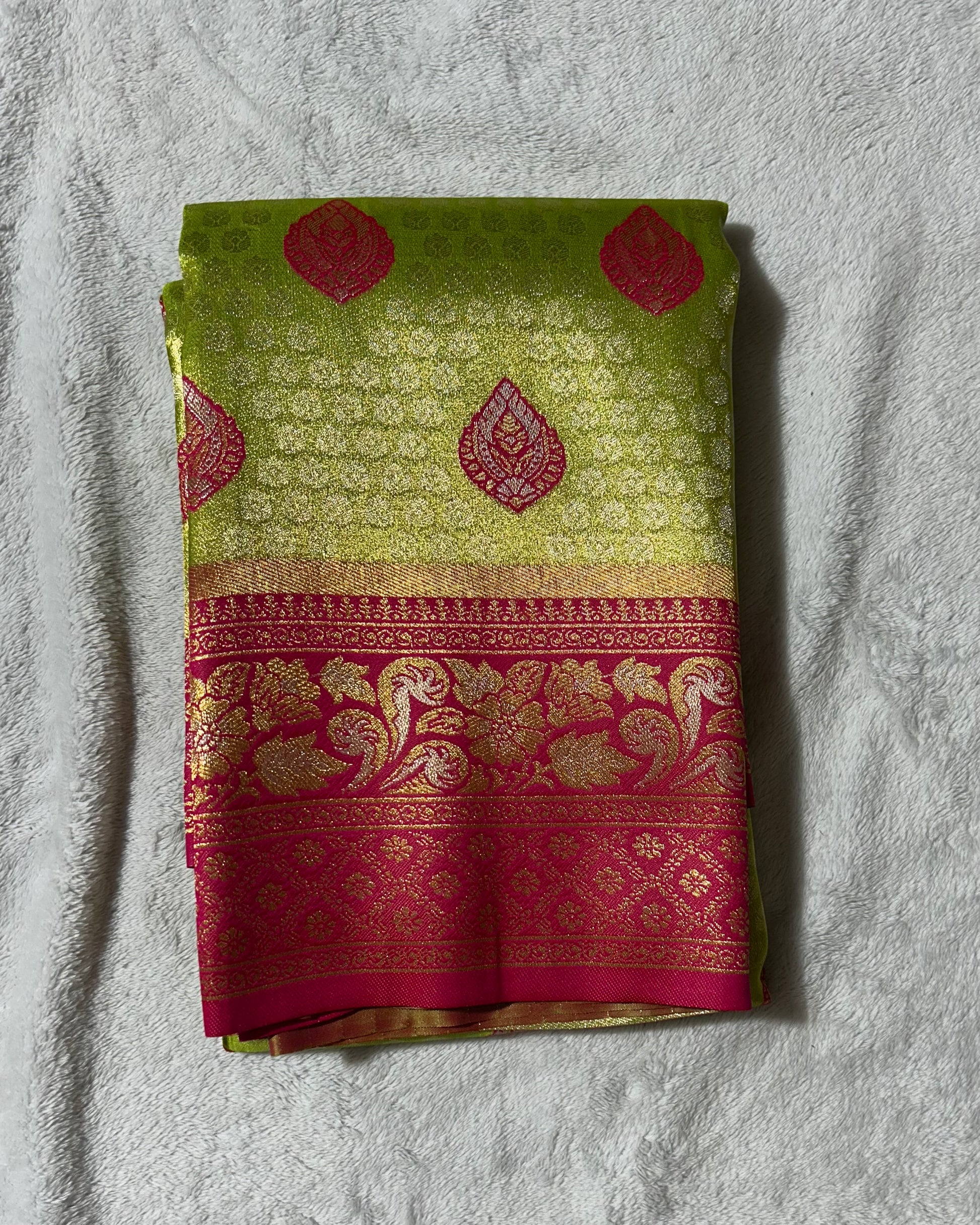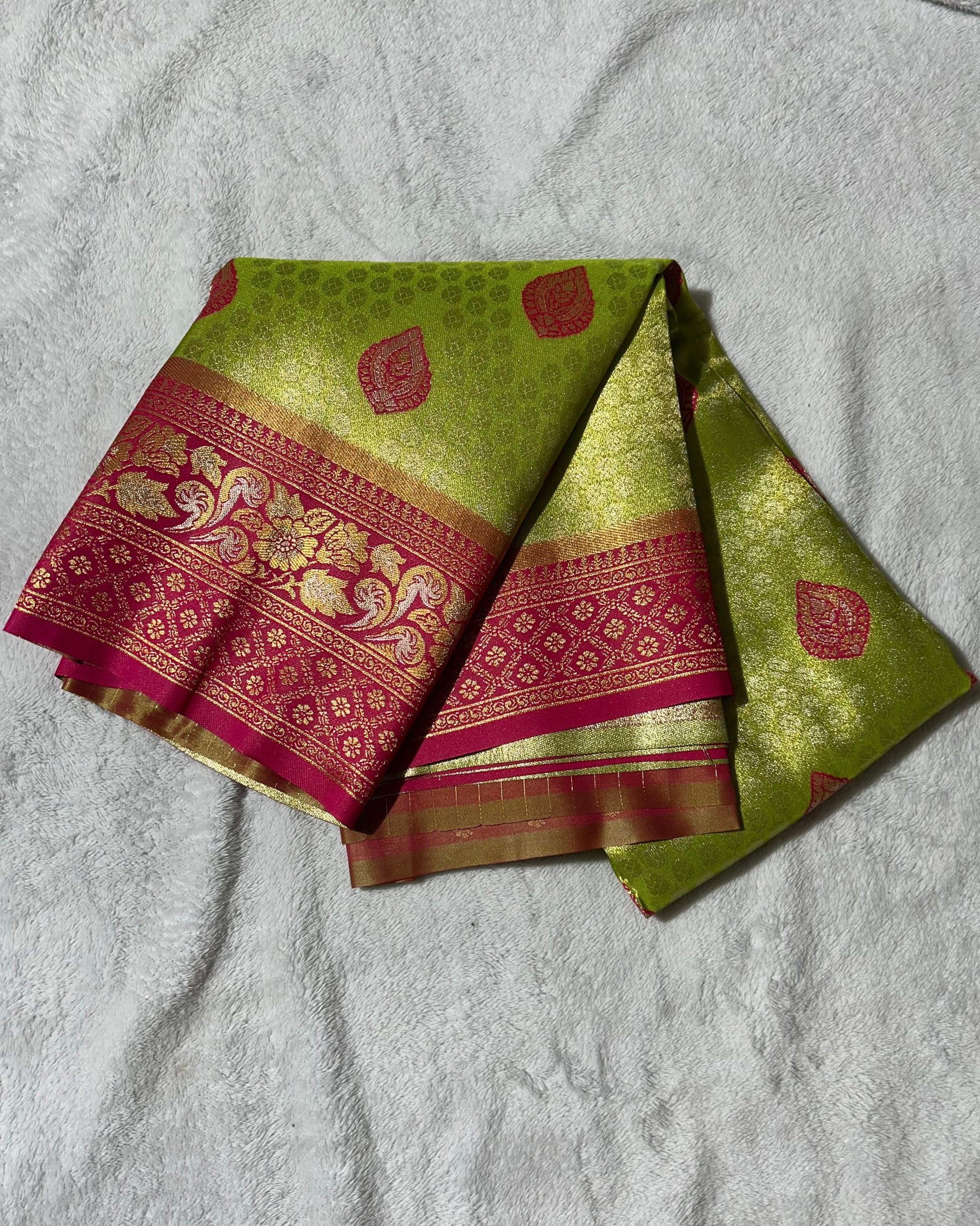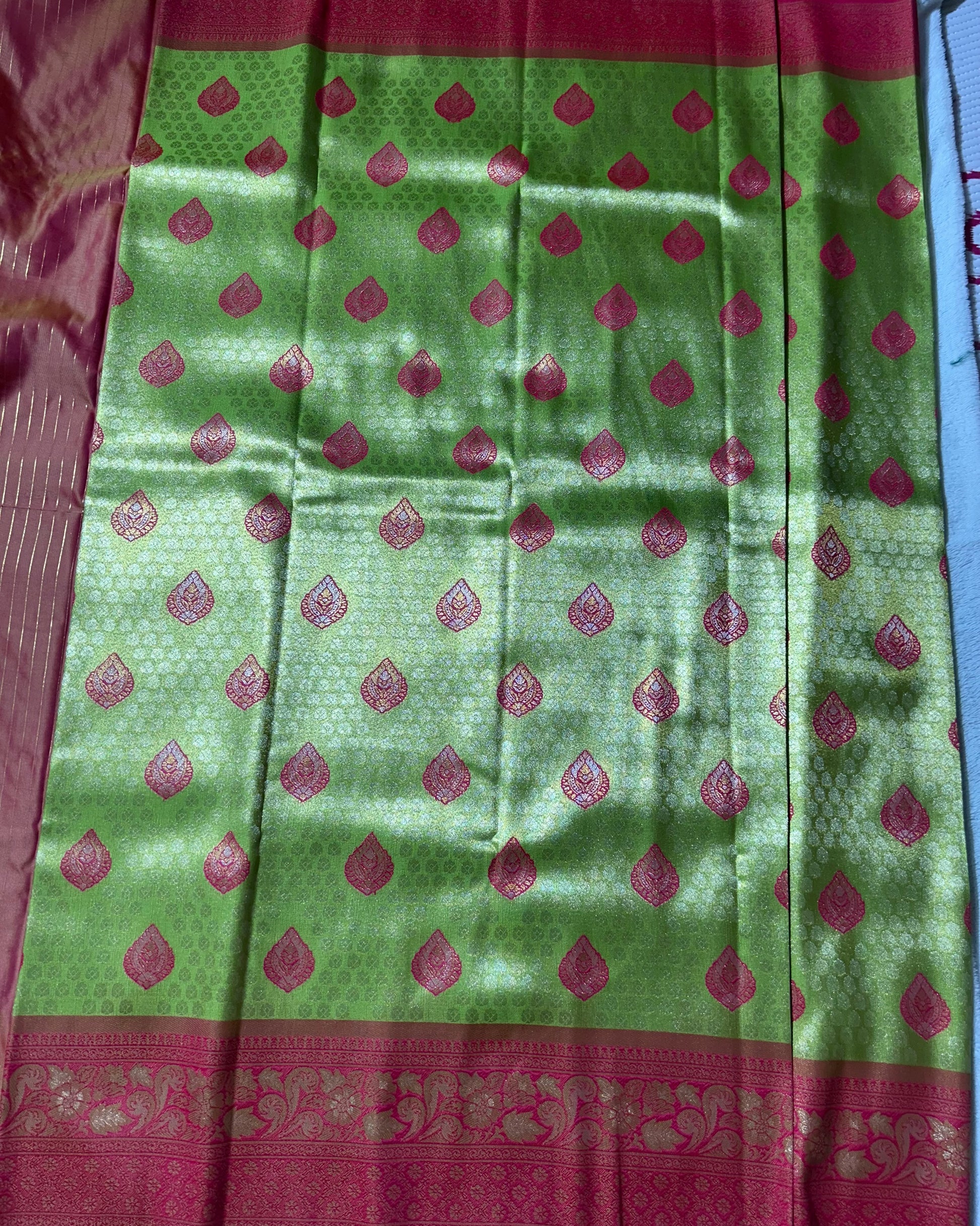 Parrot Green with Pink Banarasi Kanchipuram silk saree