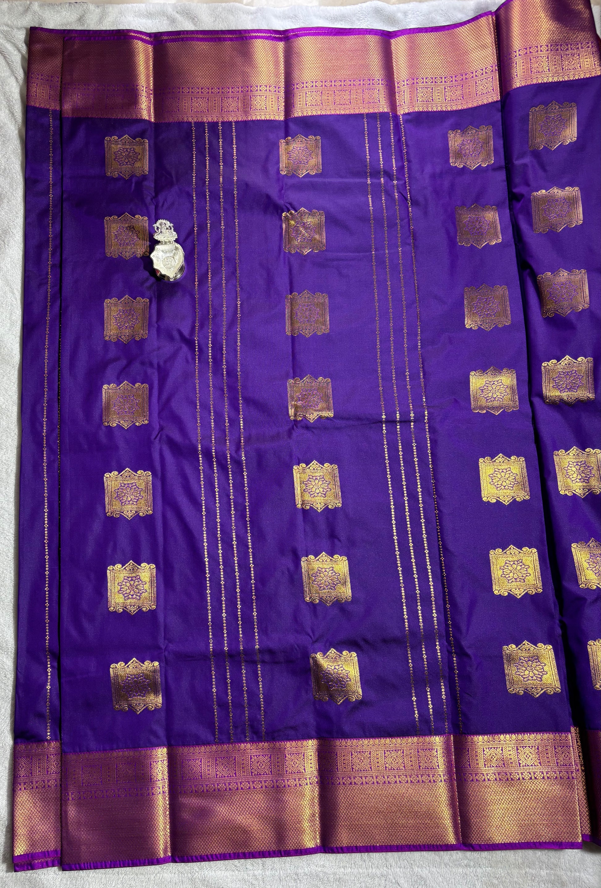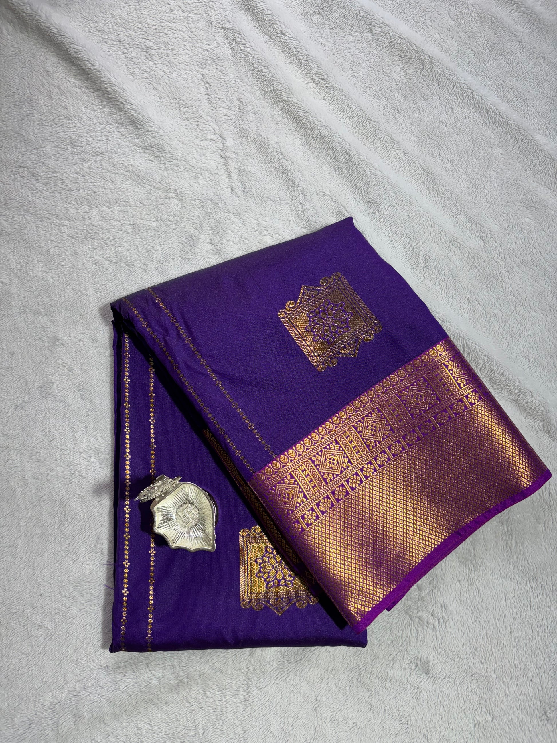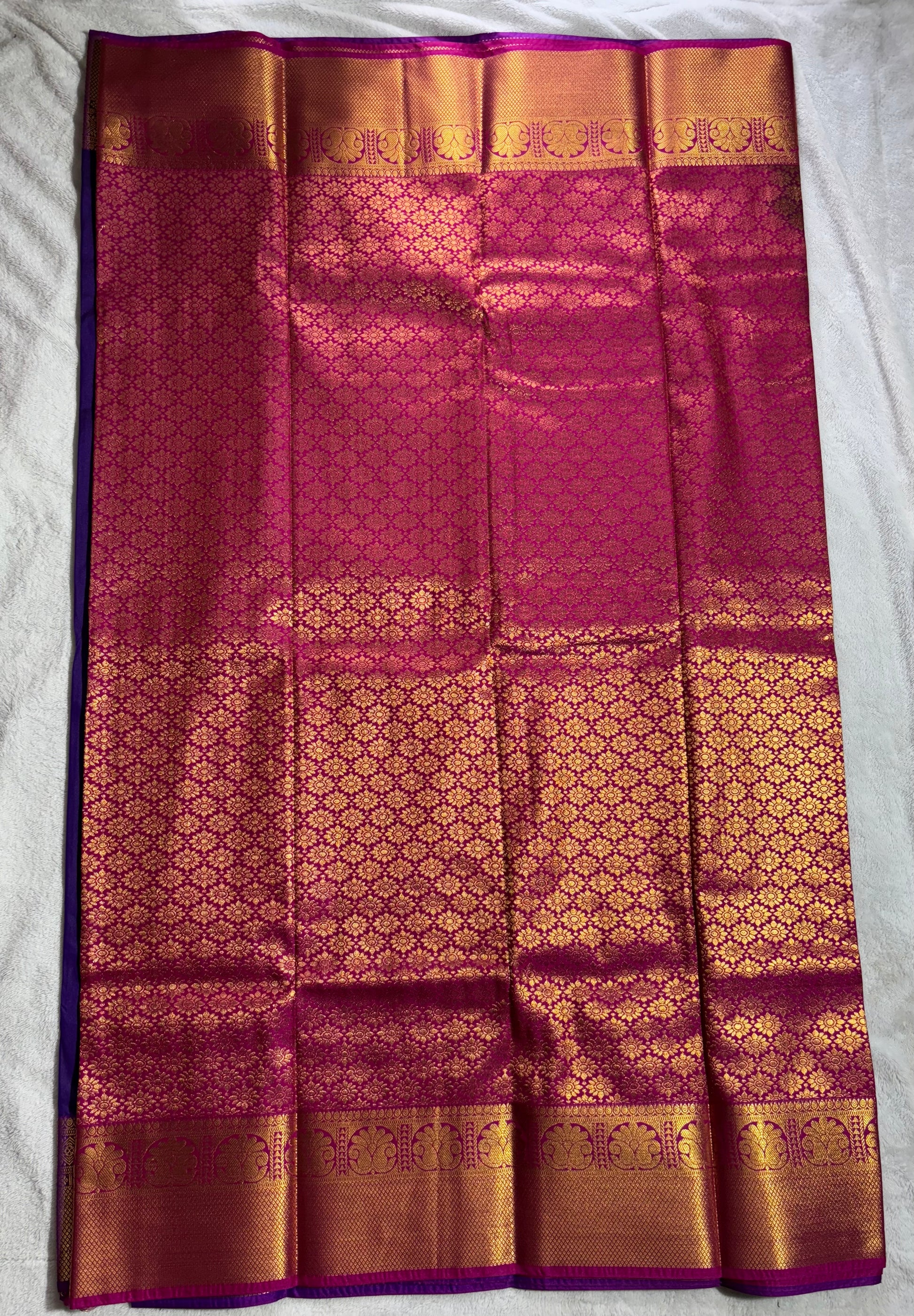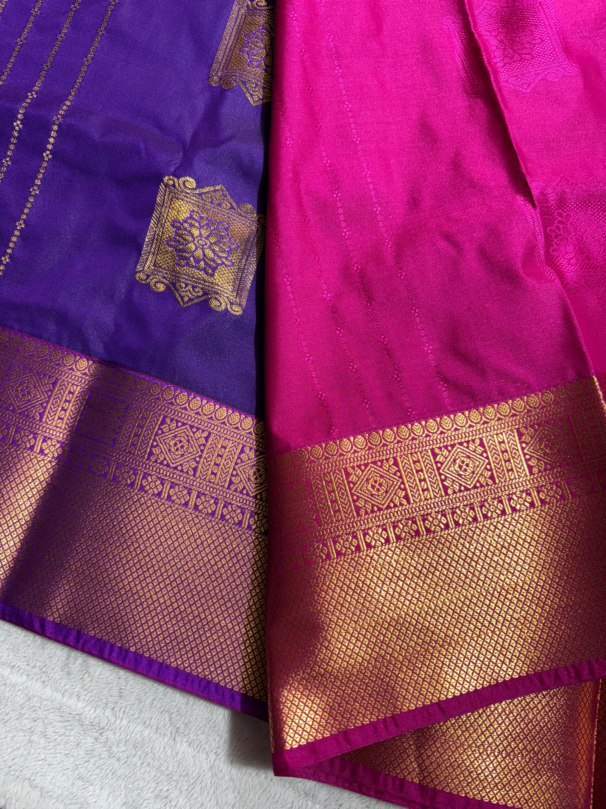 Purple with Pink contrast blouse Kanchipuram handloom soft silk saree