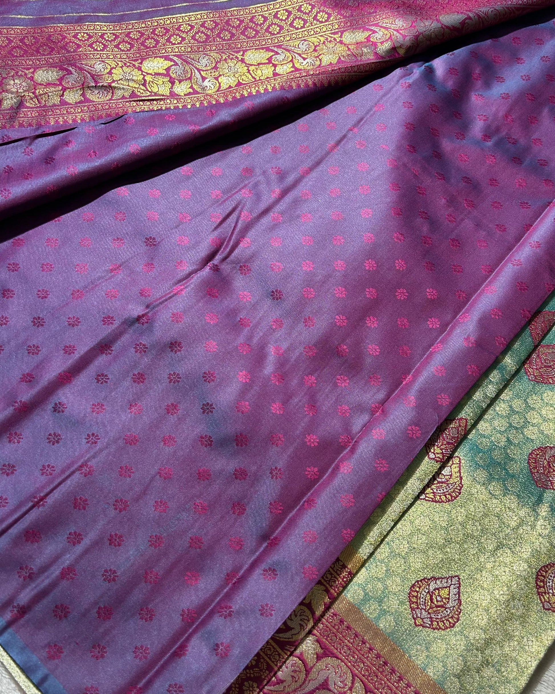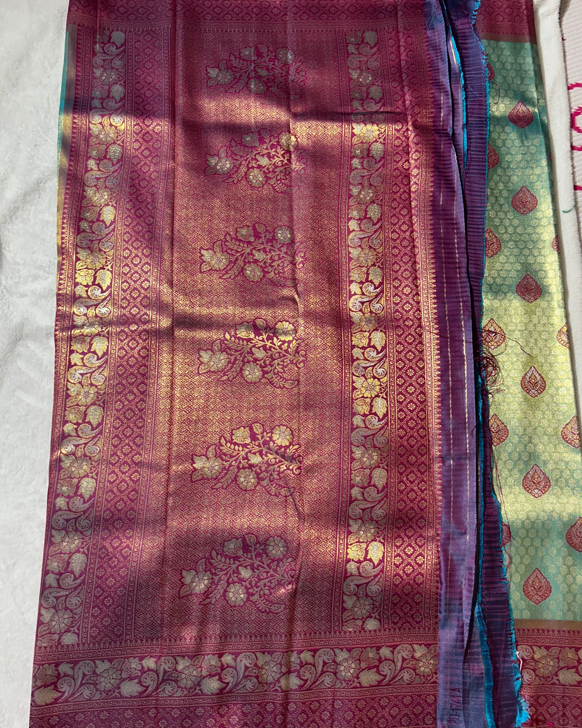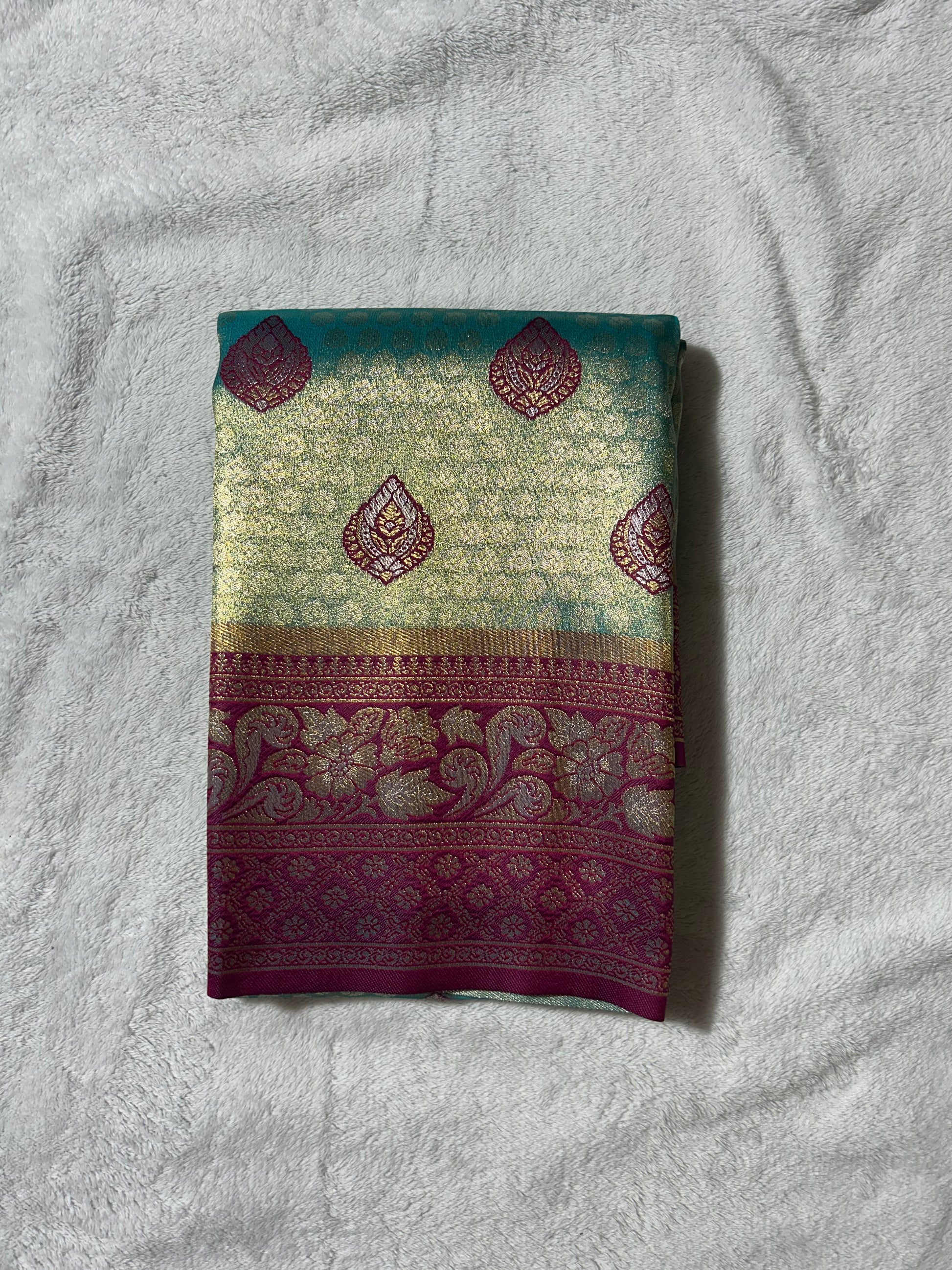 Rama Green with Maroon Banaras Kanchipuram silk saree