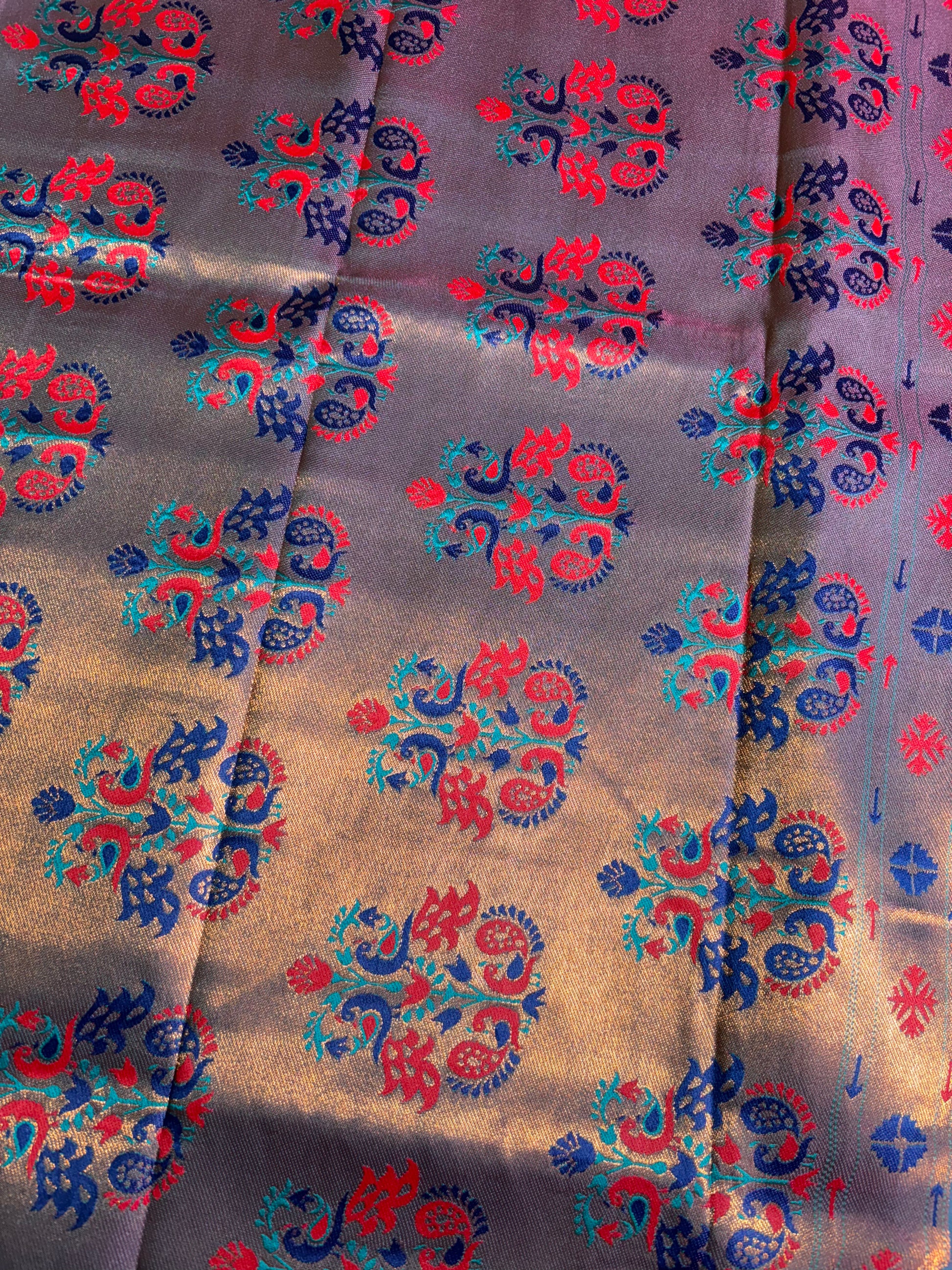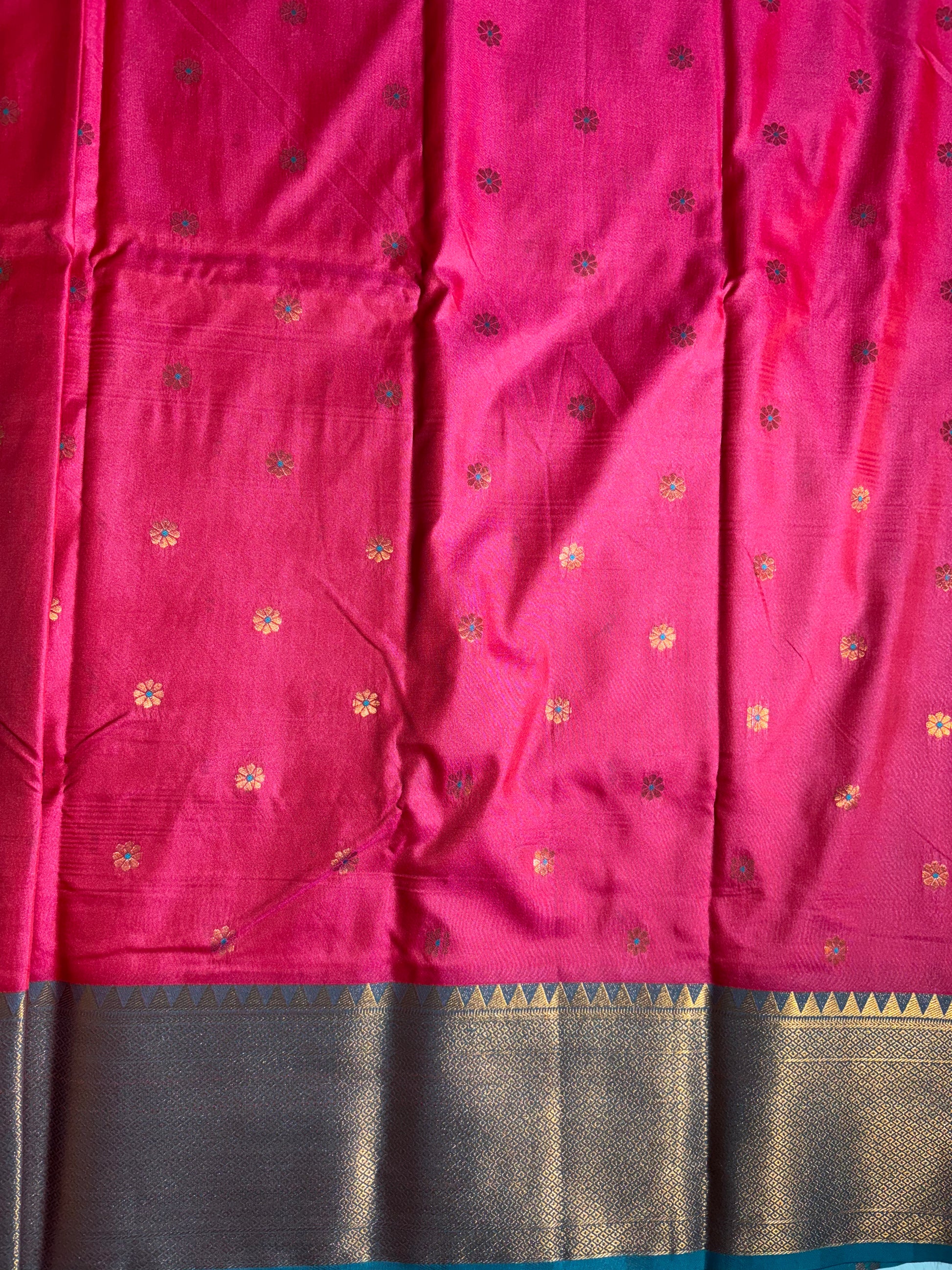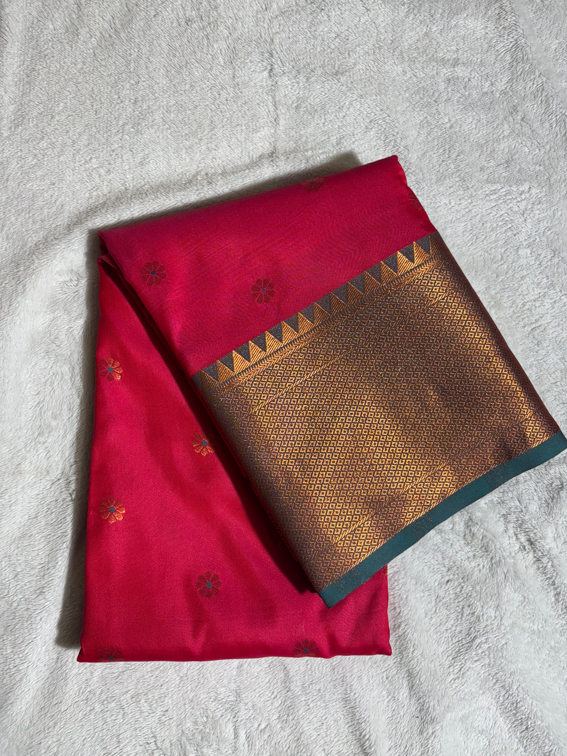 Red with Green soft silk saree
