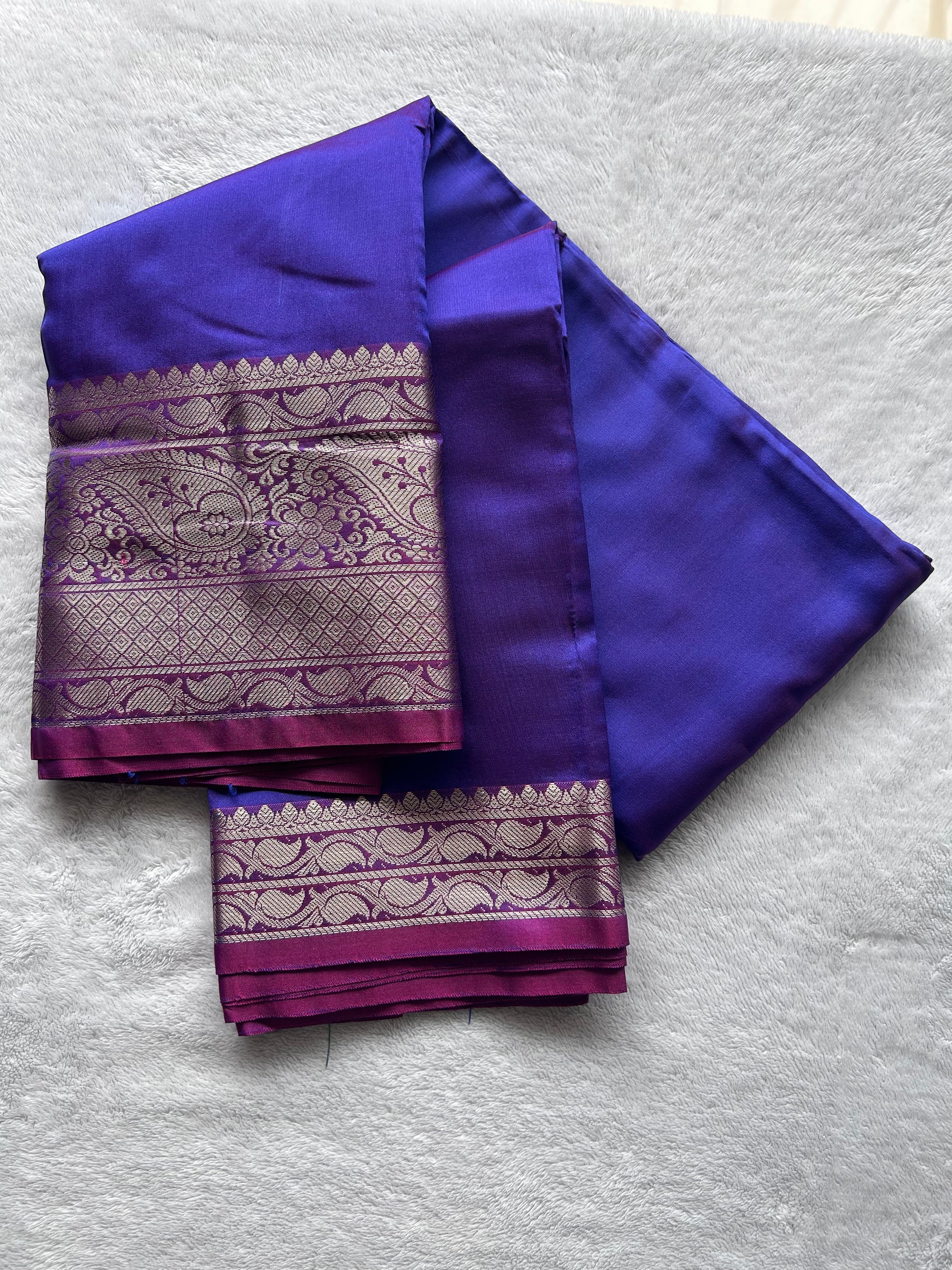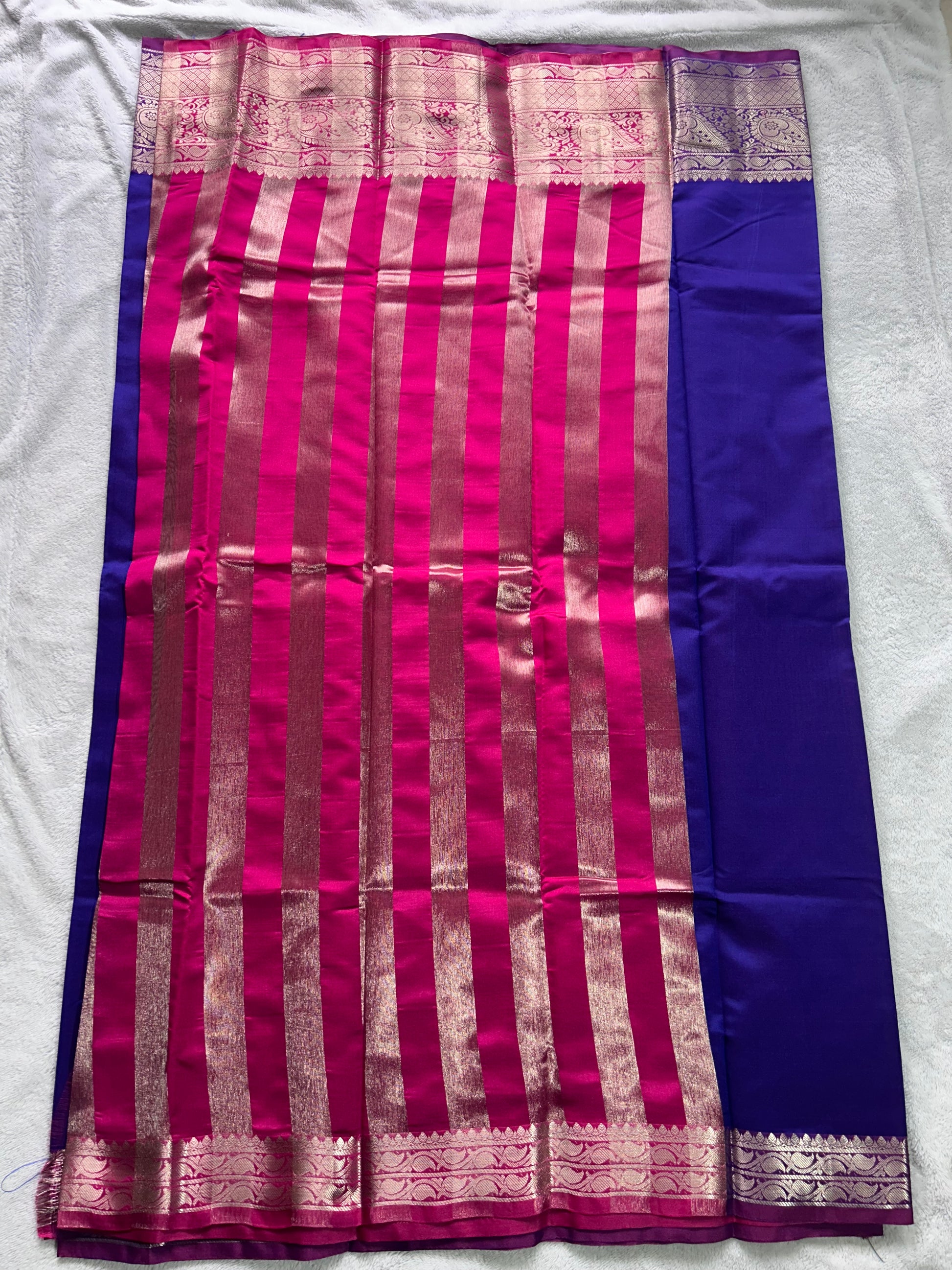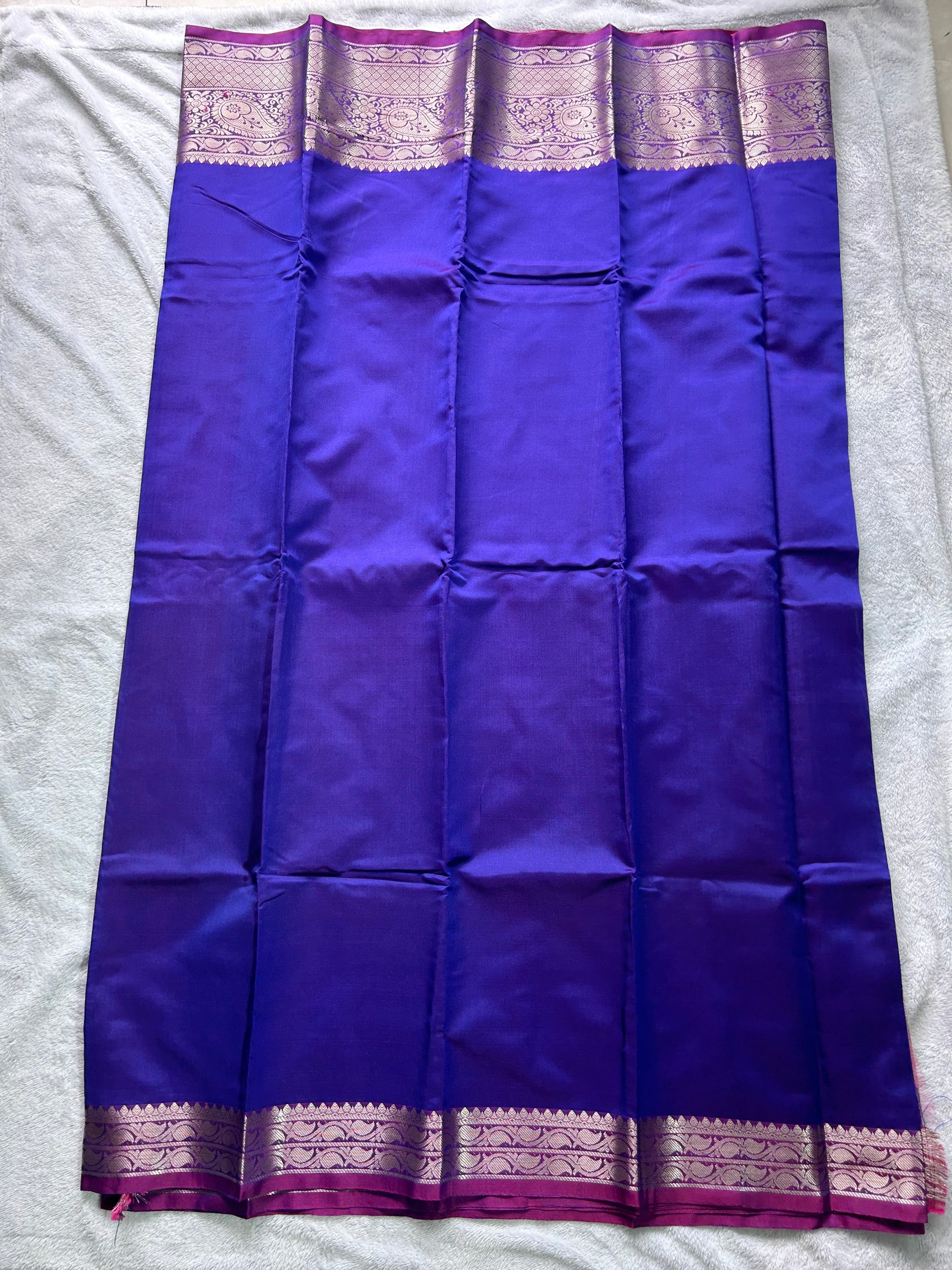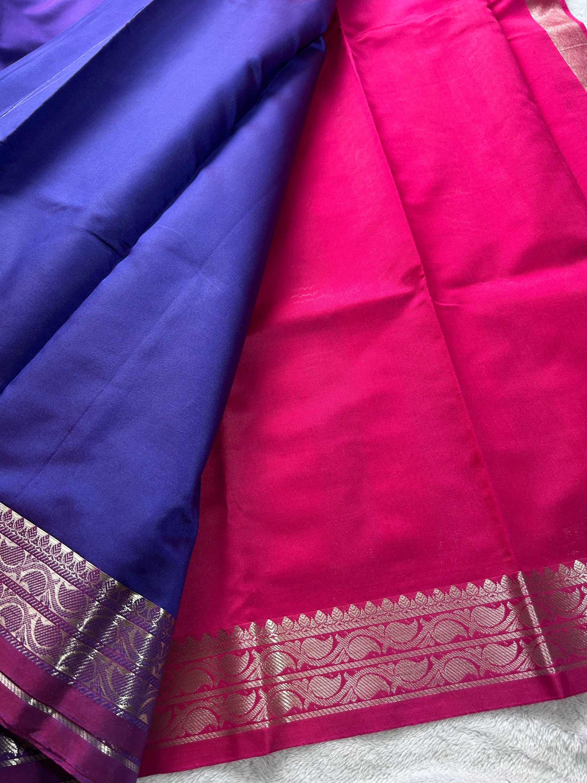 Semi silk saree in BLUE and PINK contrast with rich Zari oven border
