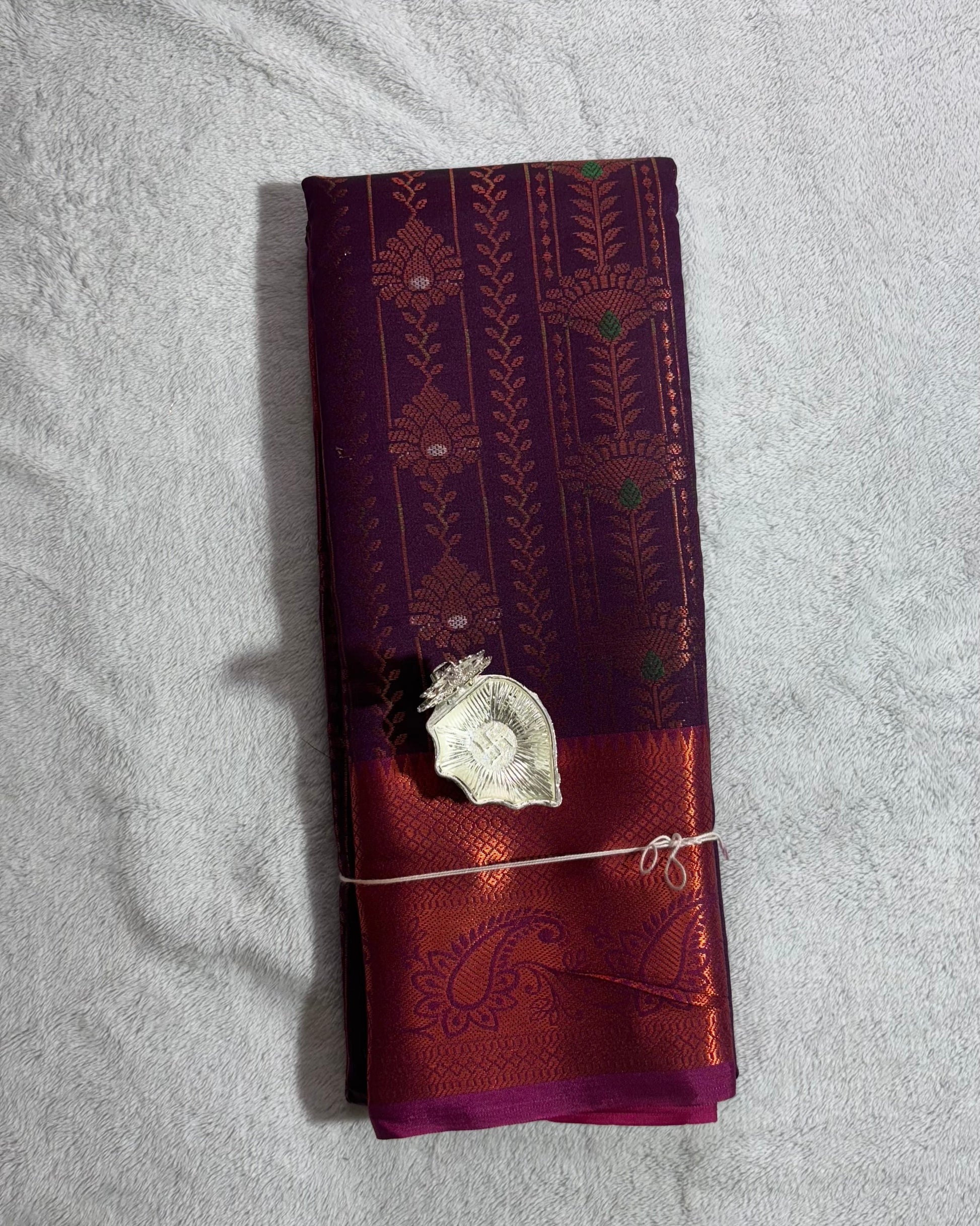Discover the perfect blend of elegance and style with this semi silk saree. The violet base is beautifully paired with a contrasting pink brocade blouse, creating a stunning color combination. Stand out from the crowd and make a statement with this versatile and eye-catching saree.